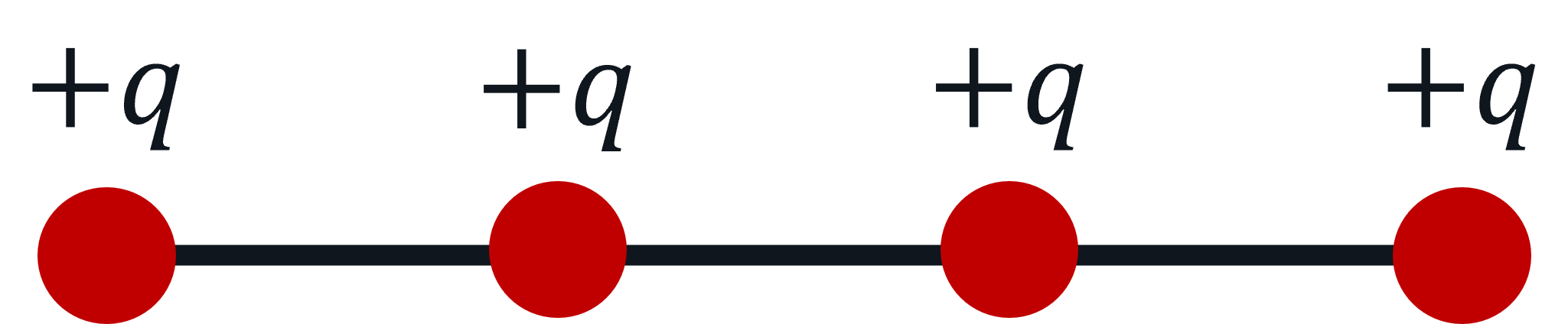 Figure21.4.3.Four charges of charge \(+q\) are evenly distributed on a wire.