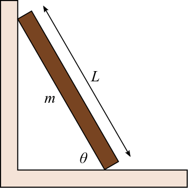 A ladder leans against a wall, as shown in the figure below. Draw an extended free body diagram for the ladder and describe the system using the Rotational Law of Motion (Newton’s 2nd Law for Rotation).
